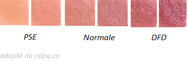 En résumé, la viande qui, après 24 heures, a un pH final qui se situe entre 5,5 et 6,2 et une couleur pas trop claire est celle qui aura les meilleures aptitudes pour la transformation.